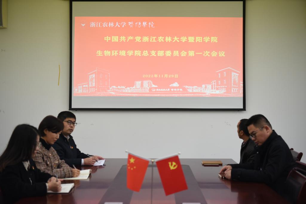 生物环境学院总支部委员会第一次全体会议随后举行。马忠兴当选党总支副书记(主持工作)、严国兵当选党总支副书记,并明确了各党总支委员的工作分工。