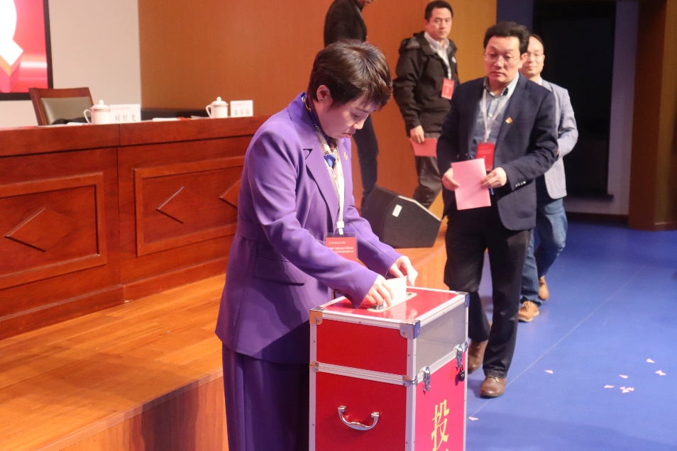 在听取党总支委员候选人情况介绍后,大会严格按照选举办法规定程序,本着公开透明、客观公正、公平民主的原则,实行差额选举,采取无记名投票的方式,一次性选举产生了商学院党总支委员会7名委员。随后,大会在《国际歌》中圆满闭幕。