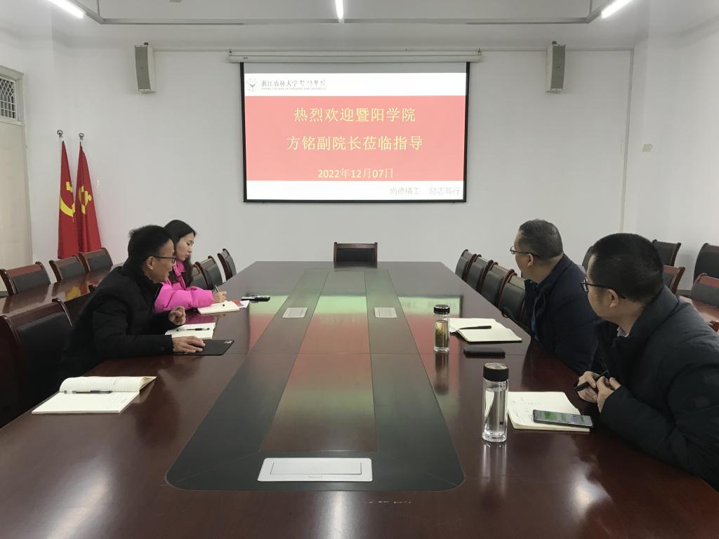 方铭认真听取了学院班子成员的工作汇报,对学院在人才培养、教学科研、师资队伍建设、党建思政、社会合作等方面取得的成绩表示了充分的肯定。他指出,一是一个学院要蓬勃向上发展,班子的领头羊作用很关键,班子成员首先要团结合作,分工不分家的用心经营学院的发展,要给全体教职工酝酿一个好的工作氛围。二是面对复杂多变的形式,要提高政治敏感性,要走进学生心里,密切关注学生思想动态,加强研判,靠前指挥,措施得当,落实到位。三是人才培养、专业建设布局等要着力向服务地方经济社会发展转变,要加强与地方产业的互动,找准合作、共建、服务、支持的结合部、发力点,通过与地方经济的深度融合,达到协同发展的目的。