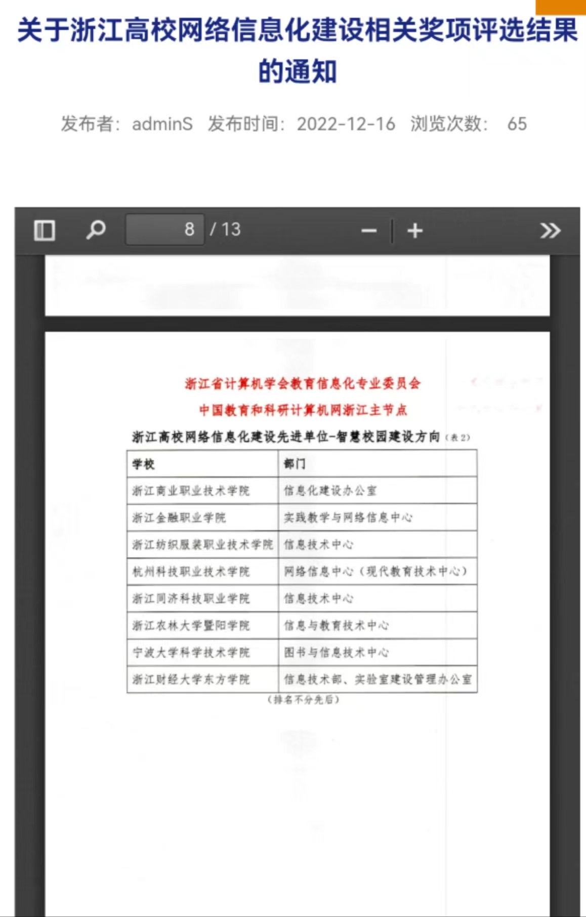 威廉希尔官网信息与教育技术中心荣获2022年浙江省高校信息化建设先进单位荣誉