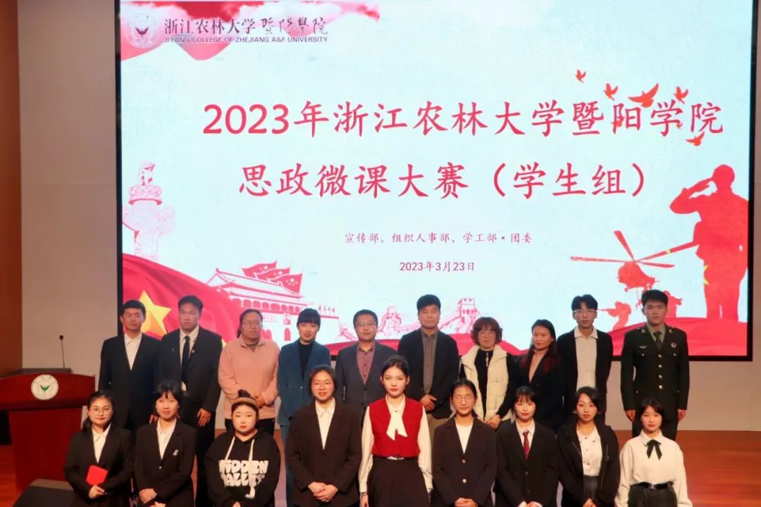 学院2023年度思政微课大赛教师组、学生组决赛分别于3月22日和23日顺利举行,学院党委副书记高国俊出席活动。共青团诸暨市委副书记段松长,诸暨市司法局暨南司法所所长孟柳霞,诸暨市实验小学教育集团庆同小学校长丁圆伟和学院相关职能部门负责人担任评委,各二级学院党总支书记、副书记、分团委书记、辅导员和师生代表们参加本次活动。