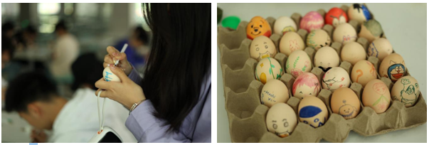 商学院团学成员们为来往的同学积极介绍“画彩蛋”的由来和过程,并为他们分发鸡蛋和画笔。同学们充分发挥自己的想象力和创造力,在鸡蛋上画上各式各样的图案。小小彩蛋,寓意圆圆满满,还寄托了大家对生活的美好期望。绘画结束后,商学院还为参加绘画彩蛋的同学准备了青团作为参与本次活动的奖励。