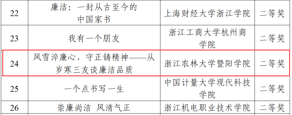 近日,省委教育工委公布全省教育系统廉洁教育系列活动评选结果,学院报送的作品《风雪淬廉心,守正铸精神——从岁寒三友谈廉洁品质》荣获征文类二等奖。这是威廉希尔官网自推进落实廉洁文化建设以来首次获得省级荣誉。