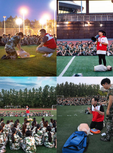 为普及应急救护知识和技能,提高学生安全防范意识和自救互救能力,掌握基本应急救护知识和技能,7月10日晚,学院红十字会救护员讲师们为参加军训的2022级学生开展了一场应急救护(心肺复苏CPR+AED)培训,1600余名学生参与了本次培训。