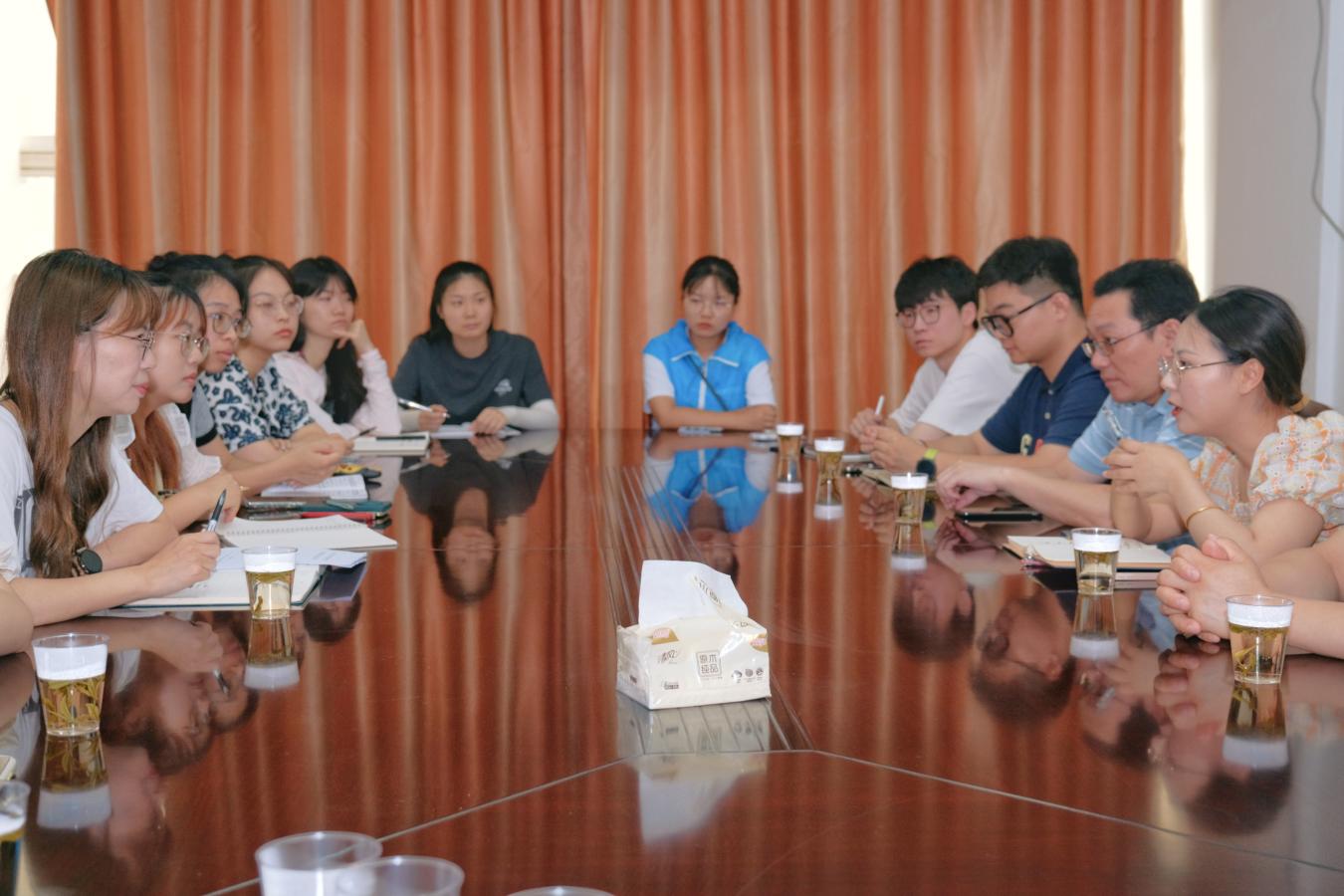 会上,浣东街道团委书记郦旗对何红光一行的到来表示热烈的欢迎,对学院的支持表示衷心的感谢。她以五个社区工作特色为切口,向各成员介绍浣东街道的基本情况,并着重围绕“城市枫桥”“楼宇党建”“反诈宣传”“暑期夏令营”这四方面工作展开介绍。她表示东盛社区作为“城市枫桥”的样板地,正着力推动“三方协同”机制,将治理力量由“单打独斗”提升为“多元联动”,各成员可借此机会实地调研,深入挖掘和传播更多社区治理现代化举措。双方还就工作安排、调查问卷展开了交流,并希望能以此次活动为契机,进一步加强对话沟通,紧密彼此联系,丰富实践内容,积极建立校地常态化合作机制。