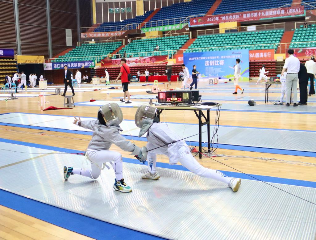 8月19日至20日,2023年浙江青少年阳光体育击剑比赛在体育中心篮球馆成功举办,来自全省19所学校237名运动员参加比赛。