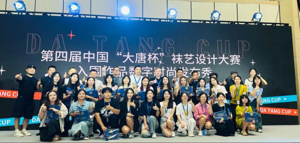 其中,第四届中国“大唐杯”国际袜艺设计大赛总决赛环节,中国大唐袜艺学院学员包璐妍作品——《忙趁东风放纸鸢》在全球1000件设计作品钟脱颖而出,荣获比赛铜奖。学院暑期在企顶岗实习的产业班学员以志愿者形式参与第四届“大唐杯”国际袜业机械装备大赛,并参观袜博会。