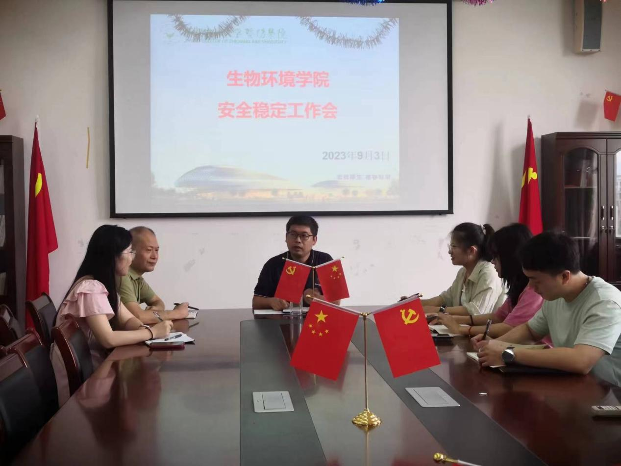 9月3日,生物环境学院在理工3502会议室召开2023年秋季新学期安全稳定工作会议,会议由学院党总支副书记(主持工作)马忠兴主持,学工办全体辅导员参加会议。