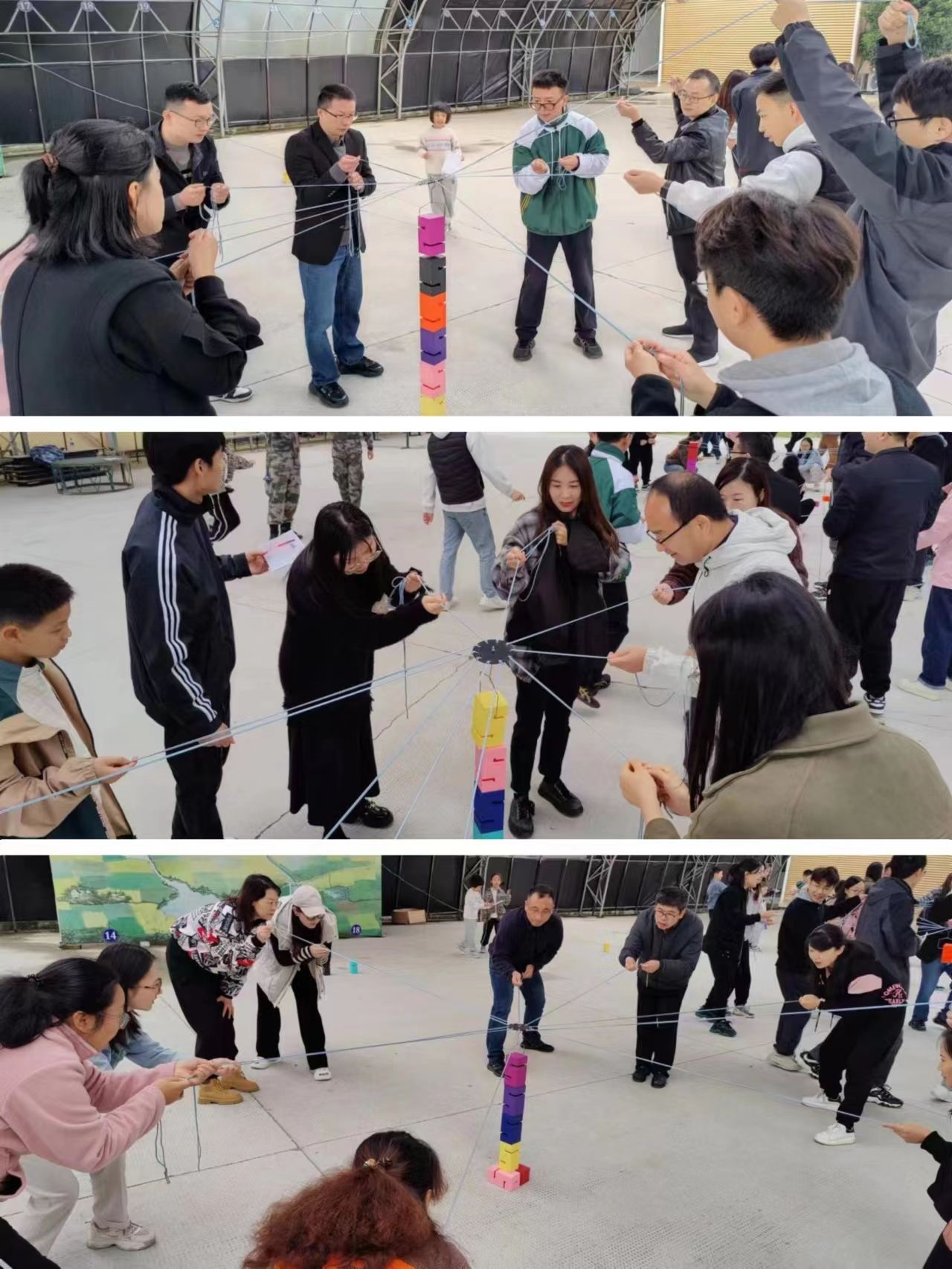 活动过程中,大家相互协作,共同搭建了彼此沟通交流的平台。素质拓展安排了“桃花朵朵开 ”“抓鸭子”“合力搭建”等一系列游戏。这些兼具挑战性、团队性和趣味性的活动项目使得活动现场精彩纷呈。大家凝心聚力、高度配合,圆满完成了各项挑战。