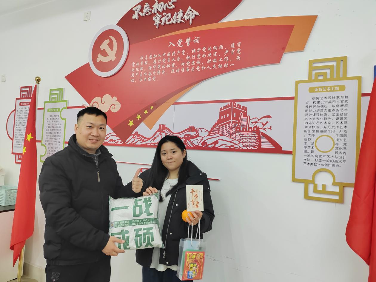 12月20日,学院党总支负责人徐定高走访慰问考研学生,为考研学生送上考研加油包,并寄语学生要做到坚持就是胜利,持之以恒跑完最后“一公里”。