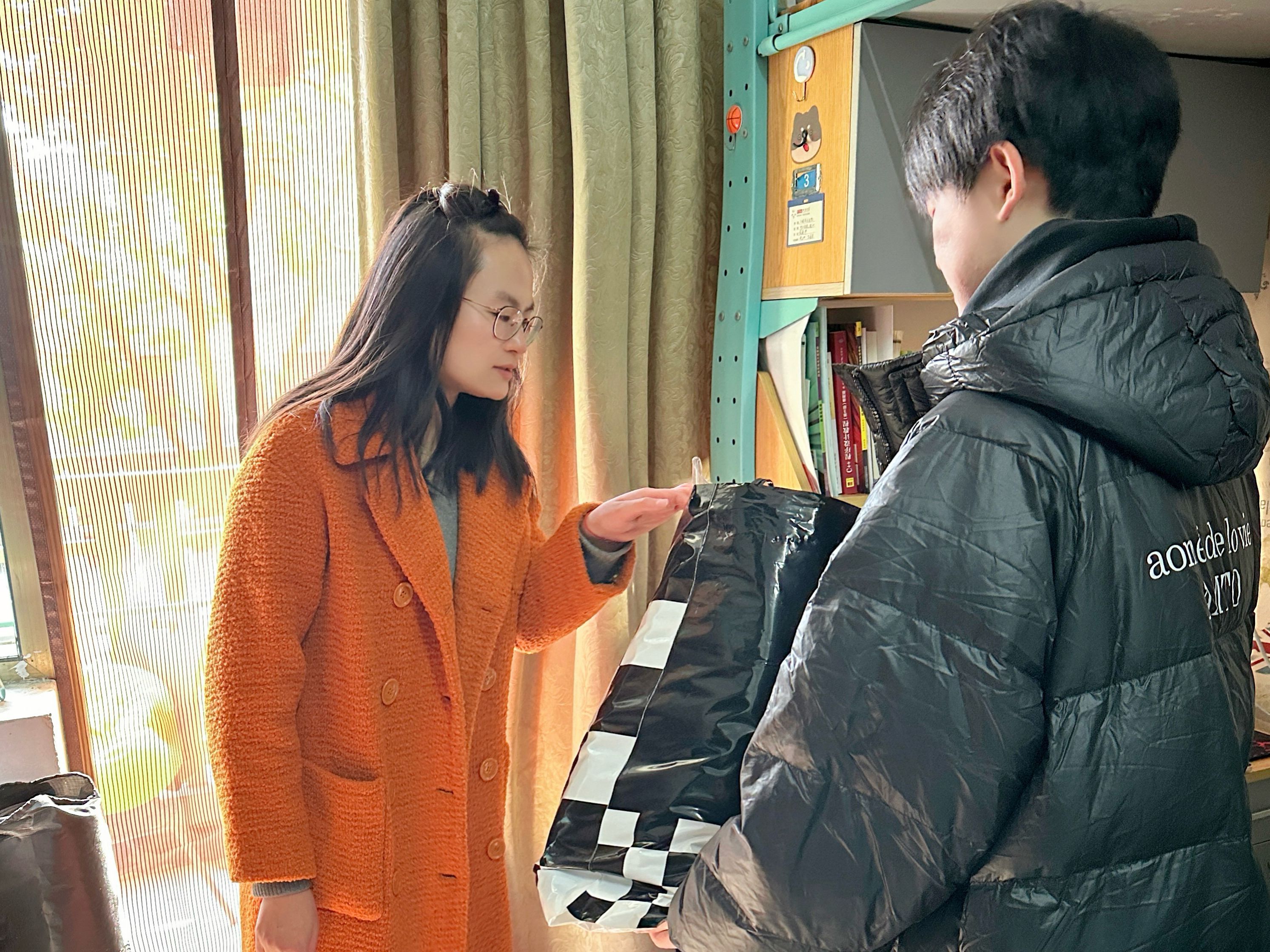 12月27日,学院老师深入学生宿舍楼,亲切问候学生的学习生活情况并了解相关问题,及时为学生们答疑解惑,提出合理建议。同时,提醒同学们要注重身心健康和校园安全,鼓励同学们要以更加饱满的心态去迎接期末考试,并为学生送上冬日温暖大礼包。