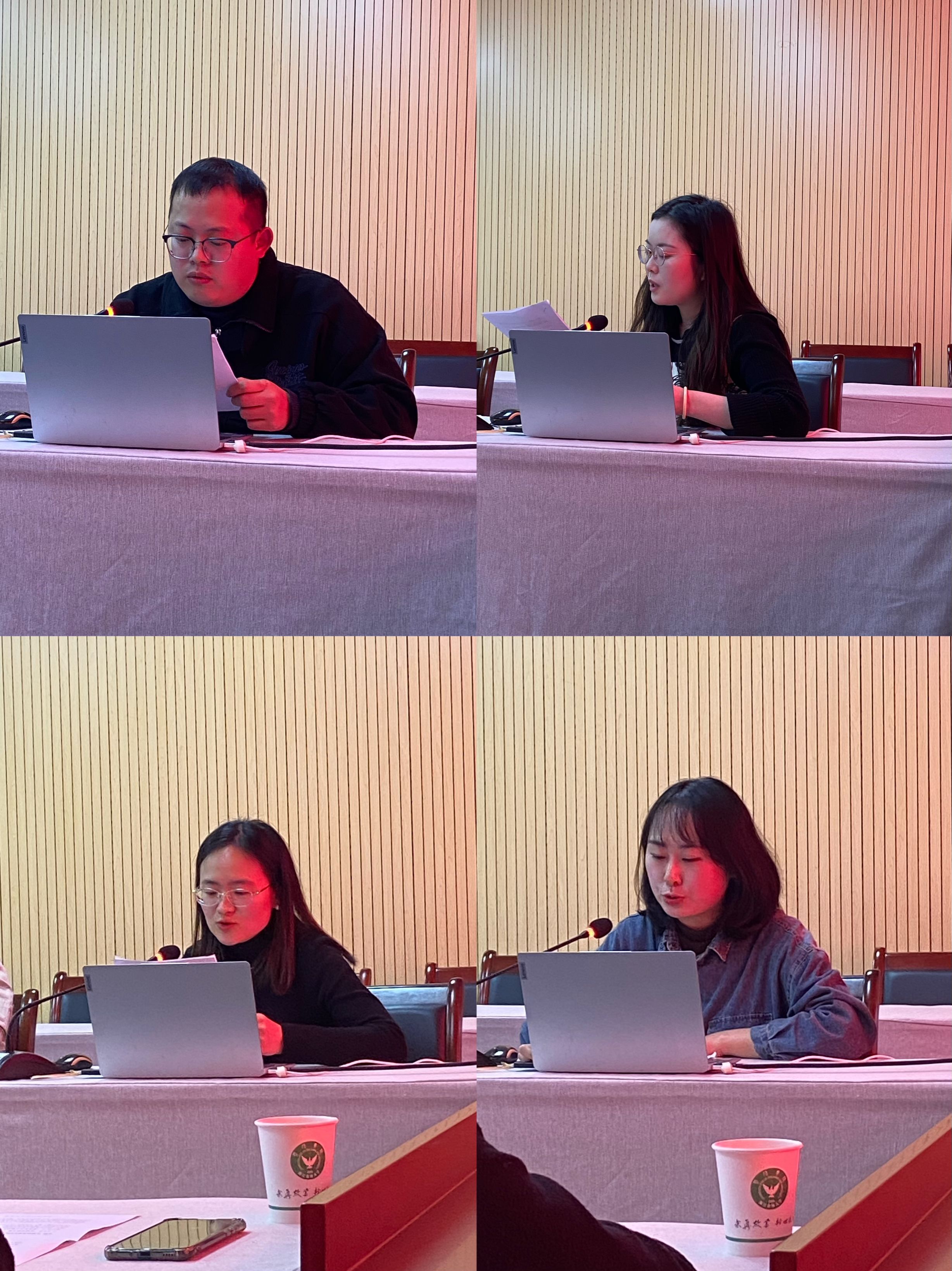 1月15日,学院在行政楼206举行2023年度辅导员考核优秀述职评审会。学院学生工作领导小组成员,学工部相关工作人员参加会议。会议由党委副书记高国俊主持。