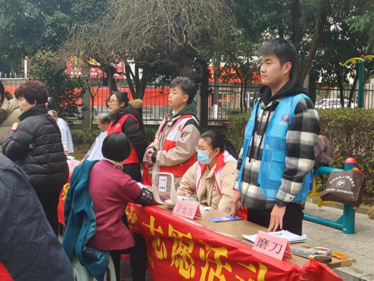 师生党员们来到西施社区,为社区居民们提供磨刀、医疗咨询、理发、反诈宣传等便民服务。69岁的周行爷爷乐呵呵地说道:“感谢孩子们,看到你们很高兴,年轻人要多好事,为社会多做贡献。”