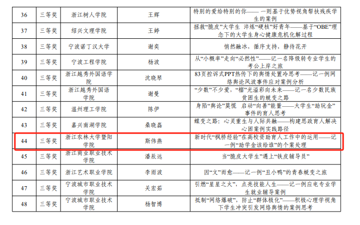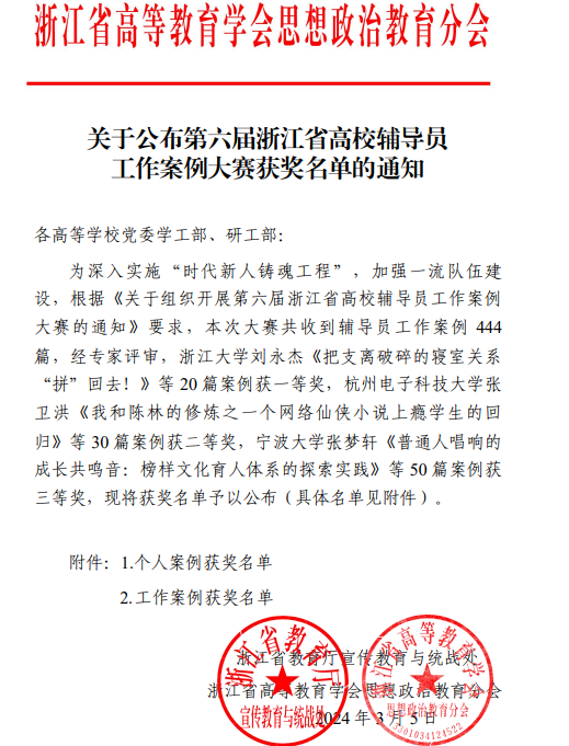 喜报|学院辅导员在第六届浙江省高校辅导员工作案例大赛中喜获佳绩
