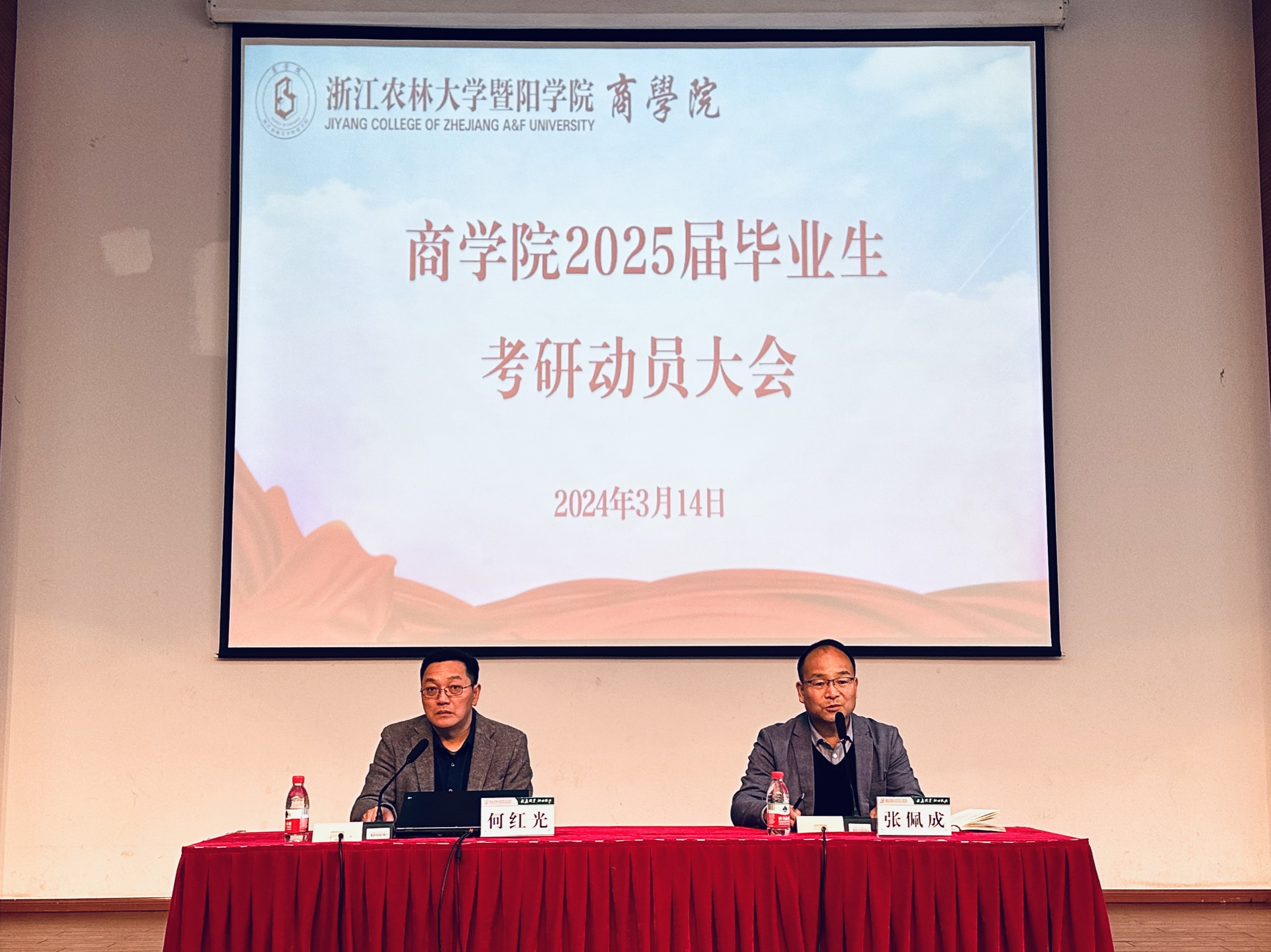 一直以来,商学院高度重视考研工作,坚持以学生为中心,始终把鼓励考研、服务考研、提升考研作为学院的重点工作之一。此次动员大会是提升学院考研升学学习氛围、助力学生成长成才的重要举措,有利于帮助同学们进一步认清形势、明晰方向、坚定目标,以积极乐观的心态迎接考研的挑战。