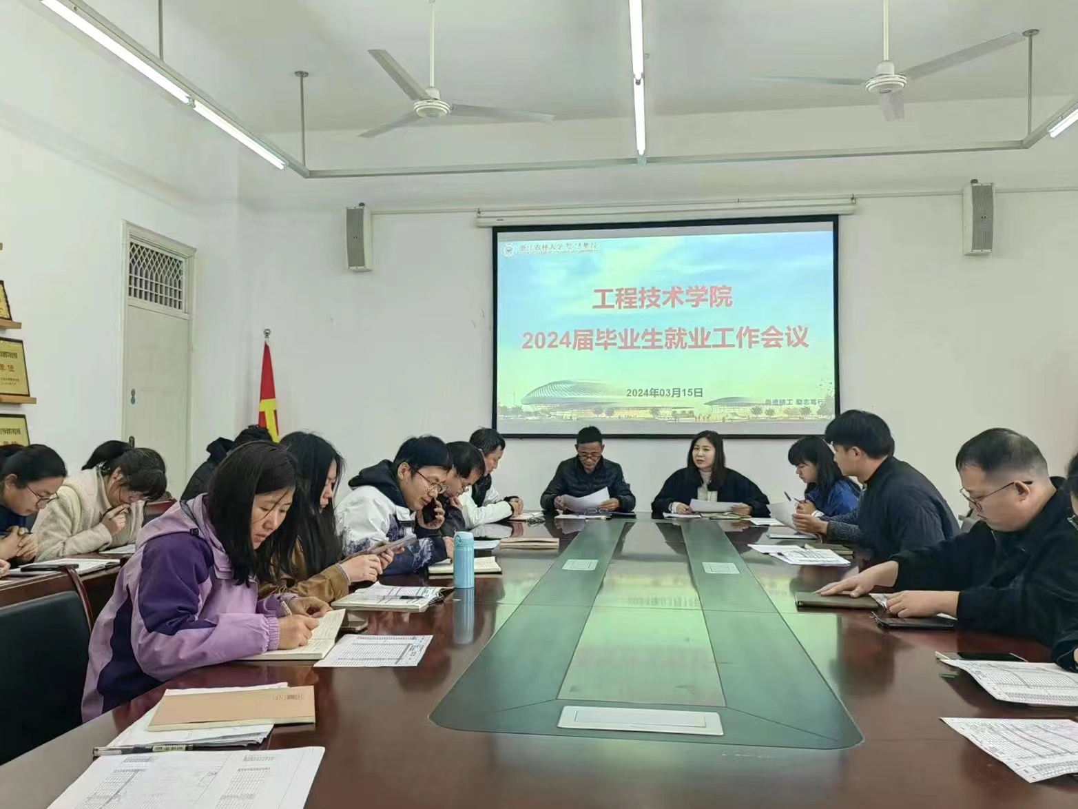 为加强对2024届毕业生就业工作的指导和管理,抢抓毕业关键期,确保毕业生顺利毕业、高质量就业,3月15日,工程技术学院在理工3402会议室召开了2024届毕业生就业工作会议。工程技术学院院长彭樟林,各专业负责人、2024届毕业班辅导员、班主任参加会议。会议由党总支书记周聪主持。