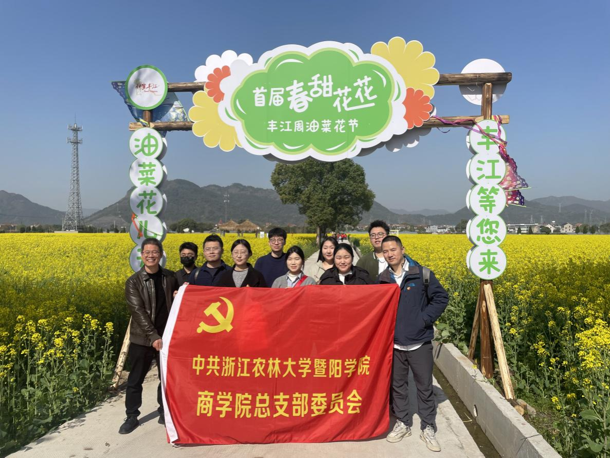 校地携手谋新篇,联建共富促发展。3月20日,商学院师生赴诸暨市安华镇参观了首届“春甜花花”丰江周油菜花节,并与安华镇就“校地”合作进行座谈交流。安华镇人大主席骆赵军、商学院副院长陈稼瑜、安华镇党委委员姚晨倩,学院市场营销专业负责人、安华镇年轻干部以及商学院师生代表参加会议。