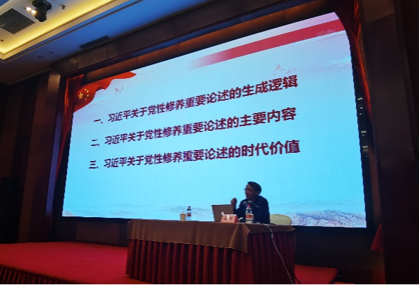 随后,高君作了学习贯彻习近平总书记关于党性修养重要论述精神的专题报告。他从习近平总书记关于党性修养重要论述的生成逻辑、主要内容和时代价值等三个方面深入展开:在生成逻辑上,立足“两个大局”的现实构想和战略考量是其现实逻辑,承继马克思主义经典作家党性的基本理论是其理论逻辑,党百余年的党性修养和锻炼是其历史逻辑,中华优秀传统文化的丰厚滋养下和个人实践体认是其文化逻辑及实践逻辑。在主要内容上,习近平总书记关于党性修养重要论述深刻回答“为什么加强党性修养”,确立党性修养的功能定位;深刻回答“加强党性修养的难点痛点”,剖析党性修养问题;深刻回答“加强什么党性修养”,阐明党性修养核心要义。在时代价值上,丰富发展了马克思主义党性学说、推动全面从严治党向纵深发展、是新时代全党进行党性教育的行动指南。