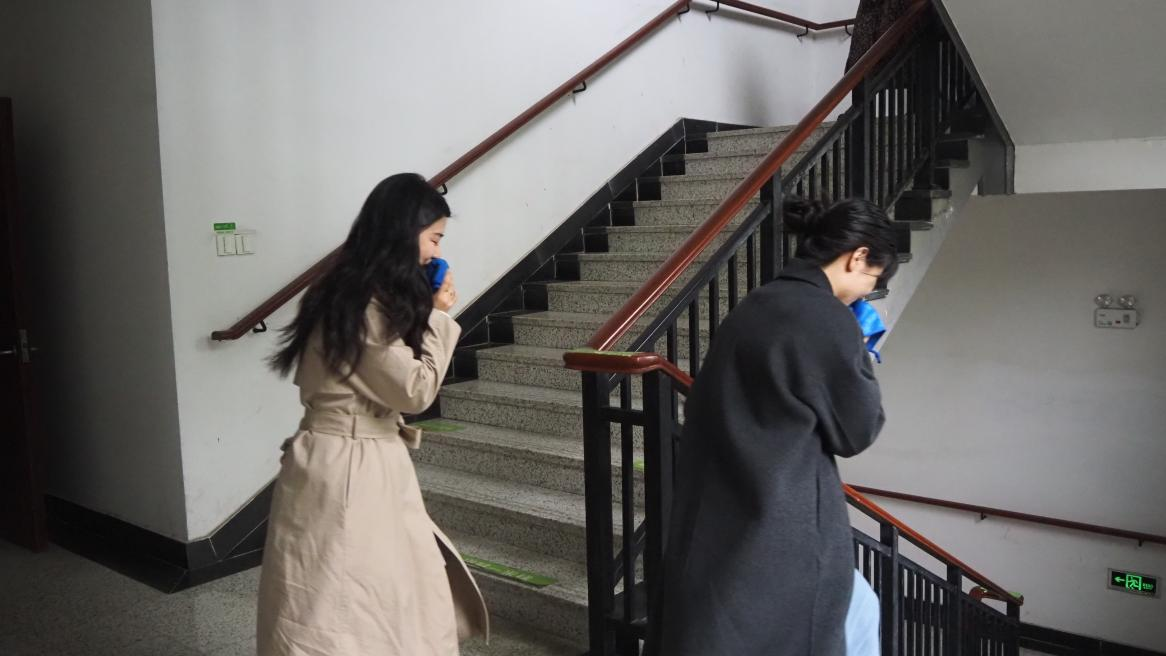 随着火情警报响起,疏散演练正式开始。按照演练方案,楼层疏散引导员以最快速度到达指定位置,引导教职工有序撤离。全体教师按要求用湿毛巾捂住口鼻,俯身从楼梯快速撤离至安全区域,清点并报告撤离人数。整个疏散演练过程既紧凑又有序,达到了预期效果。