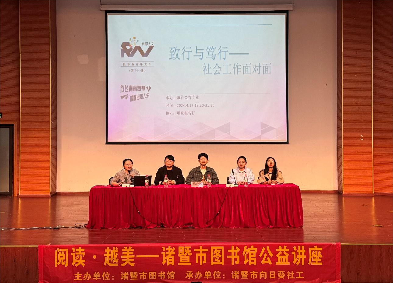 为增进威廉希尔官网人文学院、马克思主义学院城市管理专业与公共事业管理专业学生们对专业与社会工作的更深层认识与理解,进一步优化校地合作与深入交流,人文学院、马克思主义学院于4月12日在明珠报告厅举行《与社会工作面对面》出彩新青年论坛专题活动。