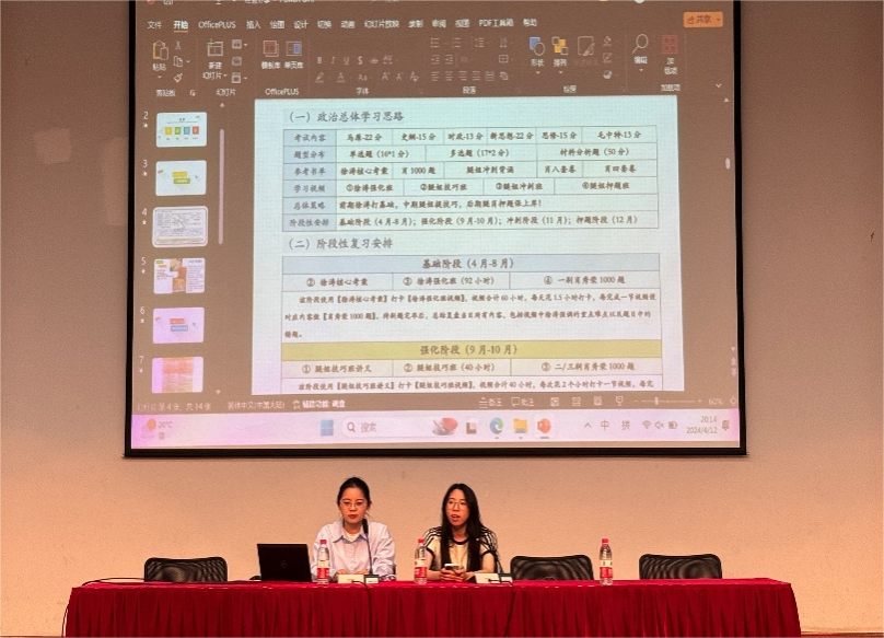 王依杨和章耀珍作为社会工作考研成功的校友代表,就自身考研经验进行了分享与交流,并从政治、外语准备、专业课以及特别分享内容等四个方面进行全面阐述。其中王依杨特别强调了专业课学习的系统性,章耀珍分享了 “知识框架+案例分析”的学习方法。对于同学们关于专业考研的各种疑问,两位校友耐心解答,鼓励同学们致力于社会工作的理论研究。