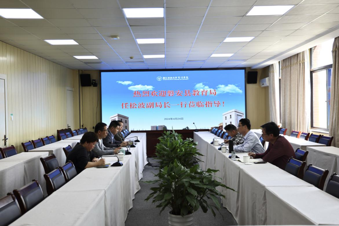 4月24日,磐安县教育局副局长任松波一行来院调研交流。学院副院长金松恒出席接待。