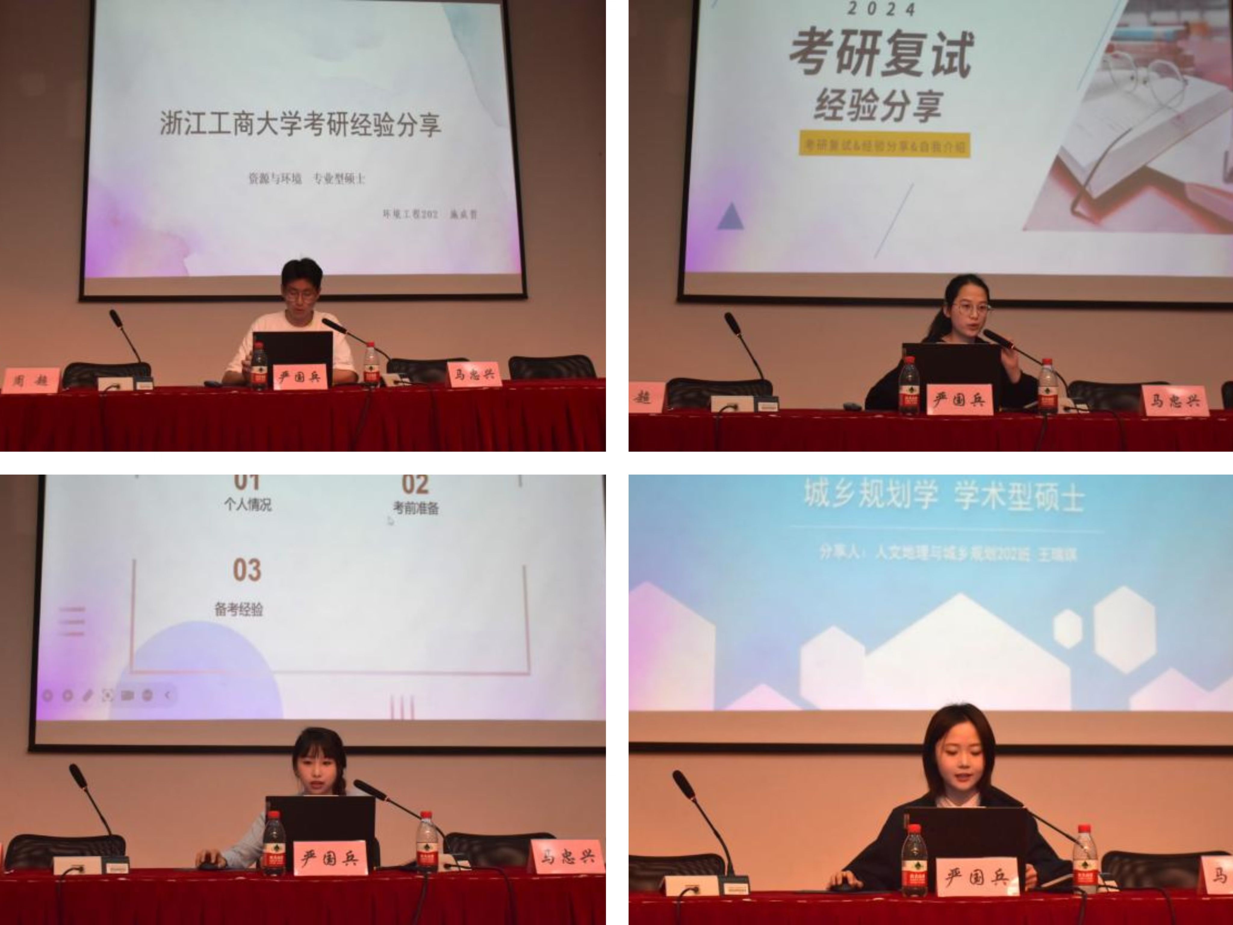 接着由今年考研上岸的12位同学,结合自己的考研经历,分享在备战考研过程中的学习方法、时间分配、以及在报名、初试、调剂、复试遇到的问题及解决经验,以帮助大家做好切实可行的的考研计划。
