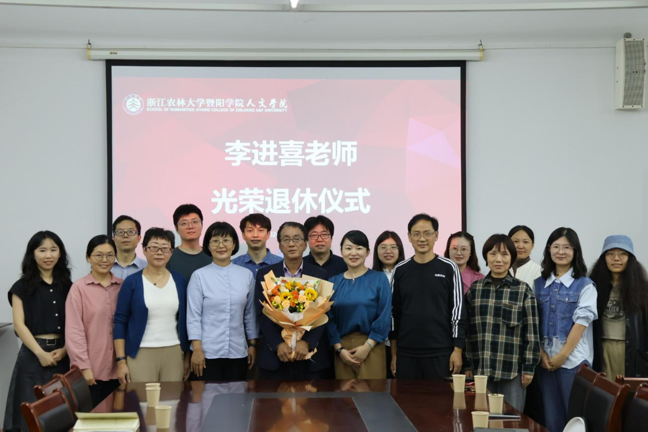 桃李满天下,辛勤育英才。为进一步弘扬尊师重教良好风尚,激励广大教职工为国家育才的热情,10月16日,人文学院、马克思主义学院在人文3502为教师李进喜举行荣休仪式。学院党委书记洪昀、党委副书记李叔君、工会相关负责人出席本次仪式,人文学院、马克思主义学院班子成员、公外专业老师及学生代表参加。仪式由人文学院、马克思主义学院党总支书记宣王威主持。
