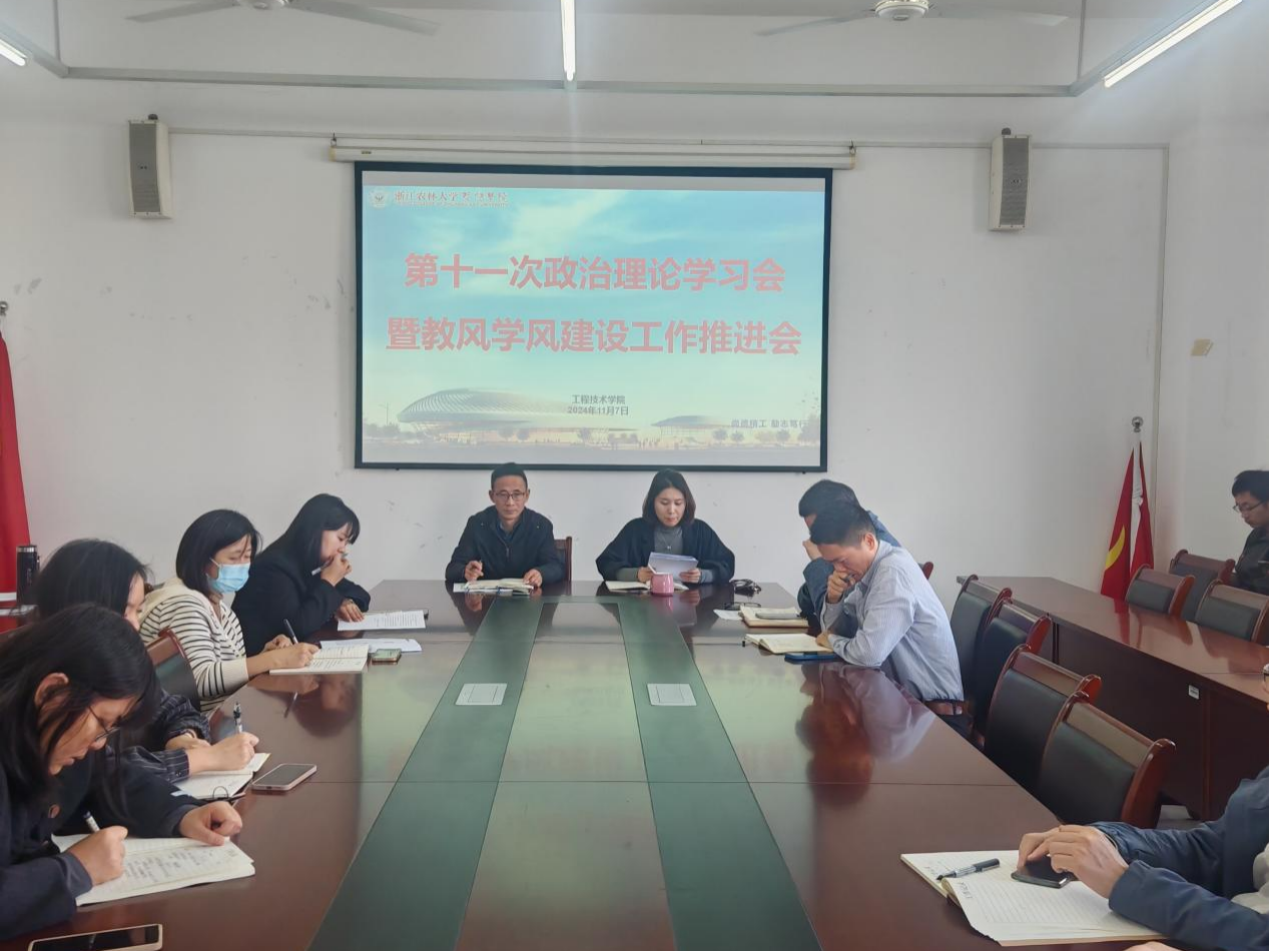 11月7日下午,工程技术学院在理工3402会议室召开了教风学风建设专题工作推进会。会工程技术学院院长彭樟林、工程技术学院党总支书记周聪出席会议,全体教职工参加会议。