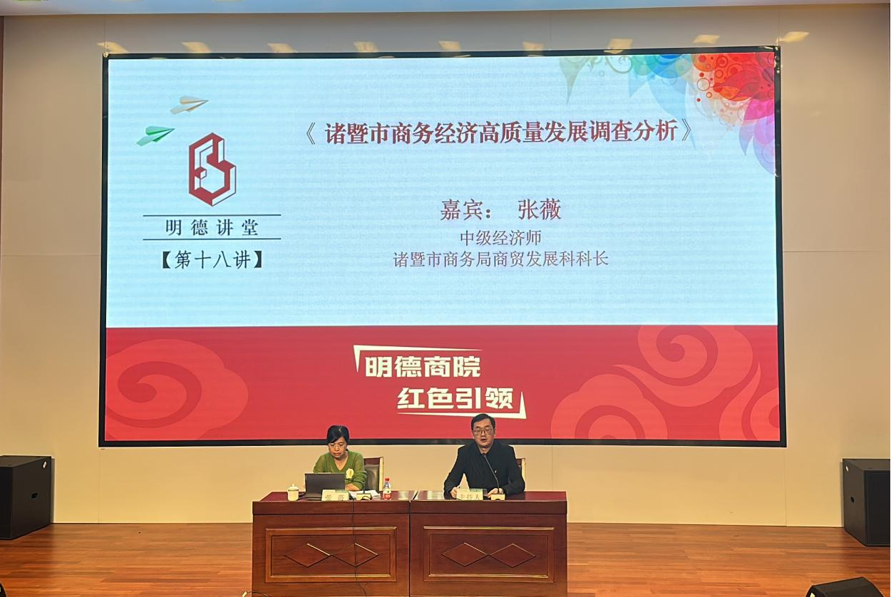 【明德讲堂】商学院举办《诸暨市商务经济高质量发展调查分析》专题教育讲座