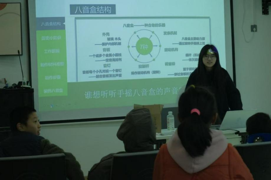 经过一个多小时的努力,孩子们终于完成了自己的八音盒作品。他们兴奋地转动发条,听着八音盒发出的悠扬旋律,脸上洋溢着自豪和喜悦的笑容。孩子们纷纷表示,这次特色课堂让他们学到了很多知识,也让他们体验到了动手制作的乐趣。