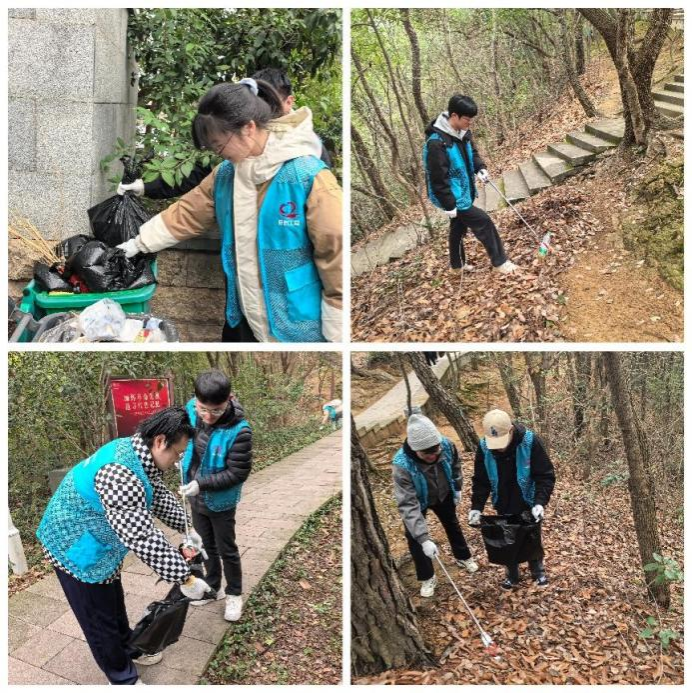 志愿者们身着统一服装,手持清洁工具,在老鹰山周边区域忙碌穿梭。他们俯身仔细捡拾地面上散落的烟头、纸屑、包装袋等垃圾,认真擦拭公共设施,不放过任何一处卫生死角。每一次弯腰、每一下擦拭,都展现着当代大学生的责任与担当。志愿者们还积极与过往市民互动交流,耐心地讲解垃圾分类、资源节约等环保知识,倡导大家携手守护城市环境。