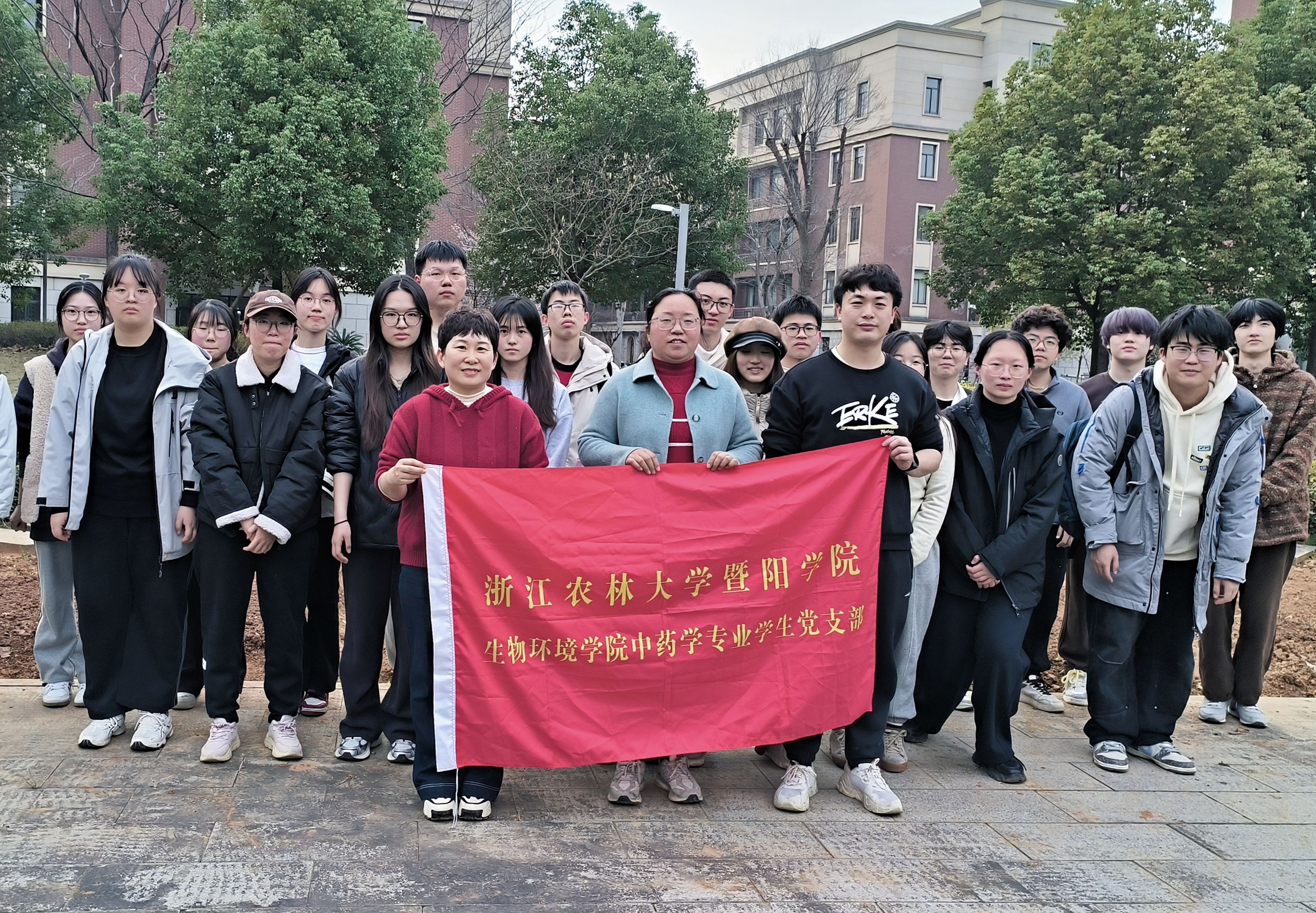 春风催新绿,药香满校园。在第47个植树节来临之际,3月11日,生物环境学院中药学专业学生党支部联合中药学专业教师、后勤服务中心,在院内百草园开展“党旗引领种本草·岐黄薪火植心田”主题实践活动。20余名师生党员挥锹培土,种下温郁金、艾草、杭白菊等10余种药用植物,以劳动教育厚植中医药文化传承根基,打造独具专业特色的“党建生态课堂”。