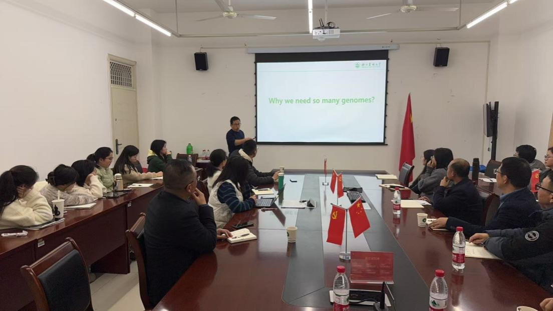 紧接着,在第二十五讲中,孙学鹏带来了“植物复杂基因组解析与育种应用”的主题讲座。作为植物进化及功能基因组学领域的专家,他聚焦于植物基因组调控元件的挖掘与育种应用,并从开展植物基因组研究的目的意义、研究进展、研究方向等介绍了目前植物基因组研究现状。随后,他详细介绍了裸子植物与被子植物在进化过程中基因组大小的变化,并揭示了裸子植物进化进程中基因组存在塌缩现象。此外,孙学鹏以香榧为例,从代谢途径的角度阐述了裸子植物与被子植物在进化上的差异。