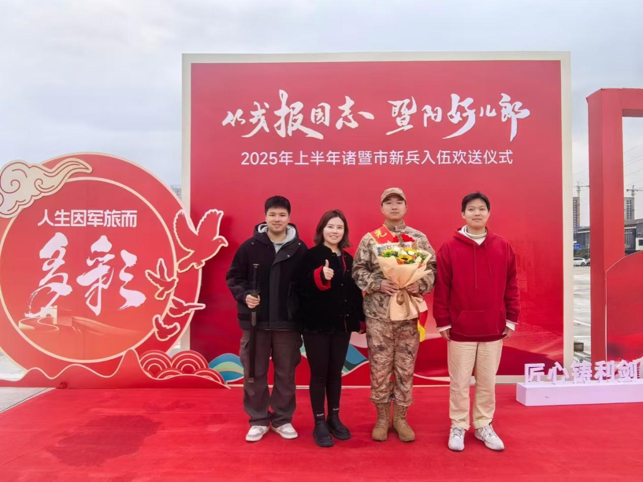 3月16日,williamhill官方网站英国威廉希尔公司新兵参加了诸暨市举行的2025年上半年新兵入伍欢送仪式。新兵战士肩披红绶带,胸戴大红花,昂首挺胸,英姿勃发,从诸暨市领导手中接过“从戎之剑”,高喊誓言:“从戎之剑出鞘!听党指挥,能打胜仗,作风优良!”这也意味着他们将告别大学校园,迎来崭新的军旅生涯。
