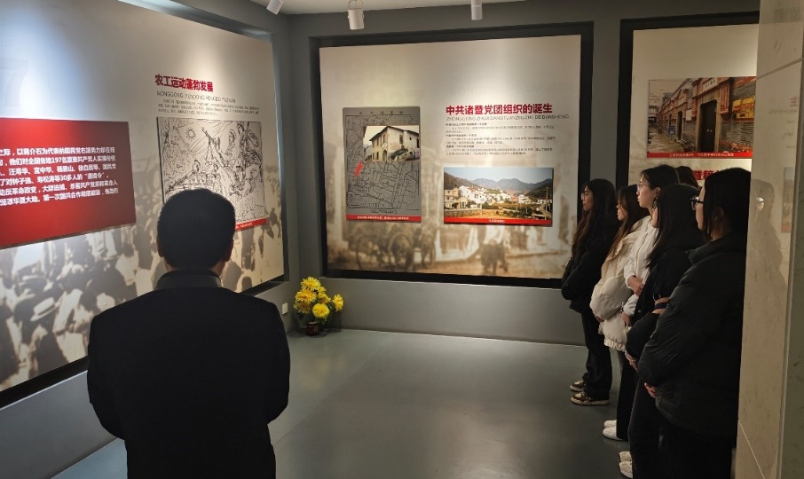 随后,全体人员走进诸暨革命纪念馆。在宣讲人员的引导下,通过一张张珍贵照片、一件件历史文物、一段段影像资料,深入了解了革命先烈在革命战争年代的英勇事迹。从抗日烽火到解放斗争,从地下党联络站到群众支前故事,在场师生深刻感受到革命先辈“为有牺牲多壮志”的家国情怀。
