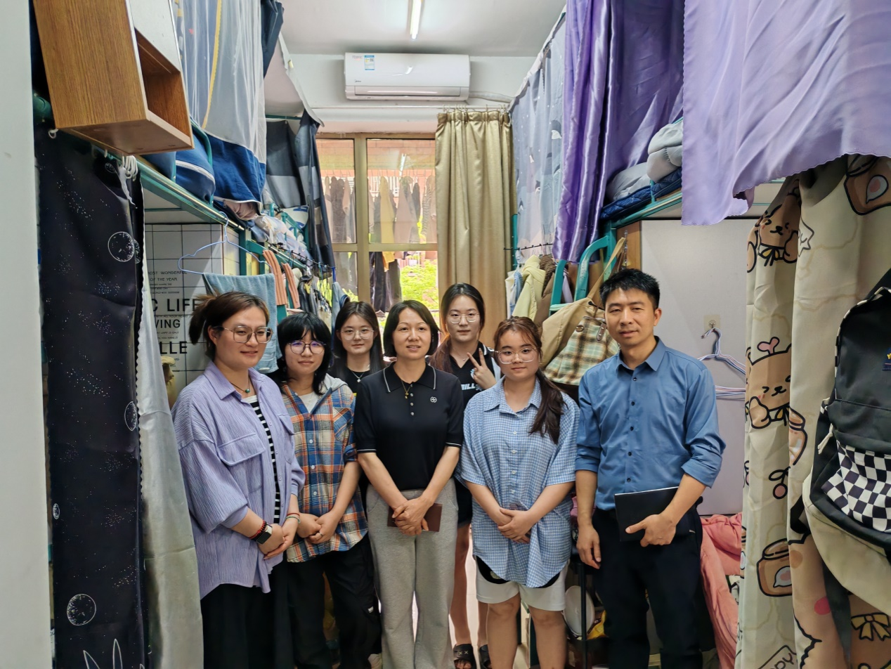 走访中,方建珍与同学们深入交流,细致了解大家的学习生活情况,针对考研规划、职业发展等热点问题,结合自身经验给予针对性指导与建议。她充分肯定了同学们专注备考的积极态度,也勉励同学们以考研为目标筑牢专业根基,注重核心课程与目标院校考纲的衔接融合,主动通过科研实践、学科竞赛等锤炼专业思维与问题解决能力,为考研复试和未来学术研究积累扎实的知识储备与综合素养。她叮嘱同学们要合理安排学习与生活时间,定期整理内务确保寝室环境整洁,关注身心健康。