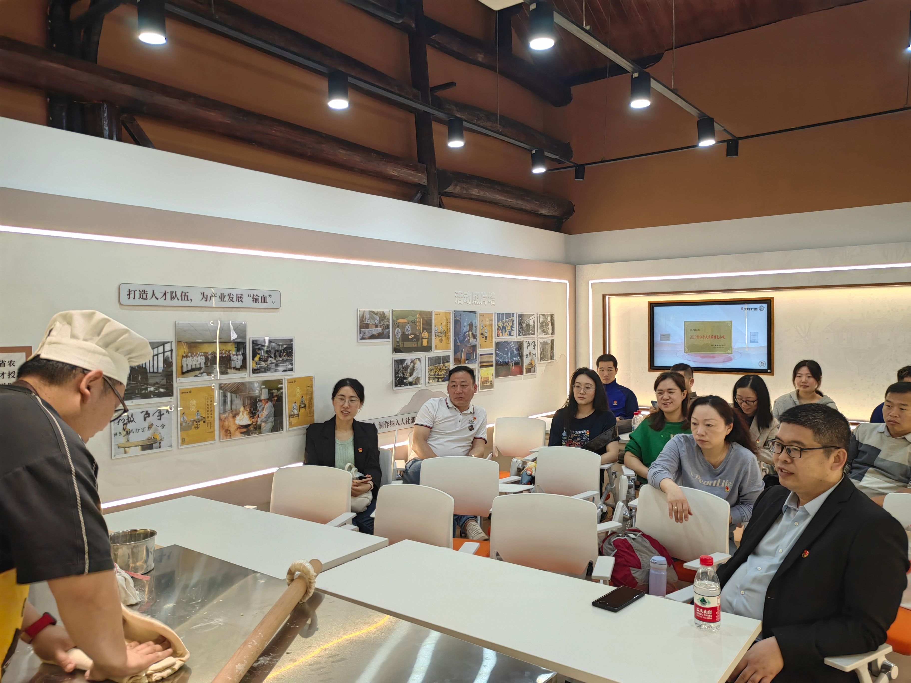 党员们抵达次坞镇溪埭村后,沿着村内彩色骑行道徒步而行,亲身感受乡村振兴战略赋能下红色美丽村庄的蓬勃生机与崭新风貌。随后,大家走进次坞打面研学体验馆,深入了解这一传统面食技艺从民间手工到非遗文化的传承脉络,沉浸式体悟其背后的文化积淀与产业发展潜力。