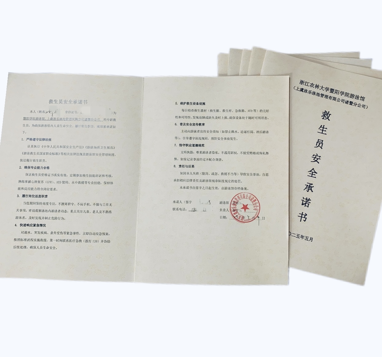 会上,全体救生人员现场签订了2025年《英国威廉希尔公司体育中心游泳馆救生员岗位安全承诺书》。