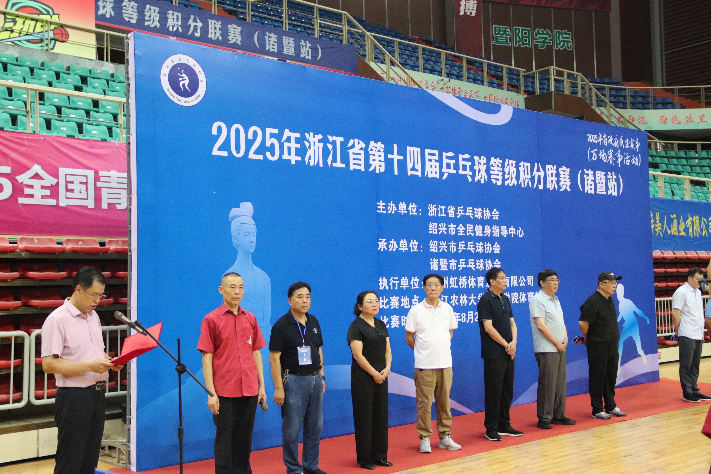 8月2—3日,2025年浙江省第十四届乒乓球等级积分联赛(诸暨站)在体育中心成功举办并圆满落幕。诸暨市政协副主席袁志刚,浙江省乒乓球协会副主席、秘书长何海珠,省乒乓球协会副主席、绍兴市乒乓球协会会长徐宝泉,省乒乓球协会副主席张养铭,诸暨市乒乓球协会会长黄建烽等出席开幕式。