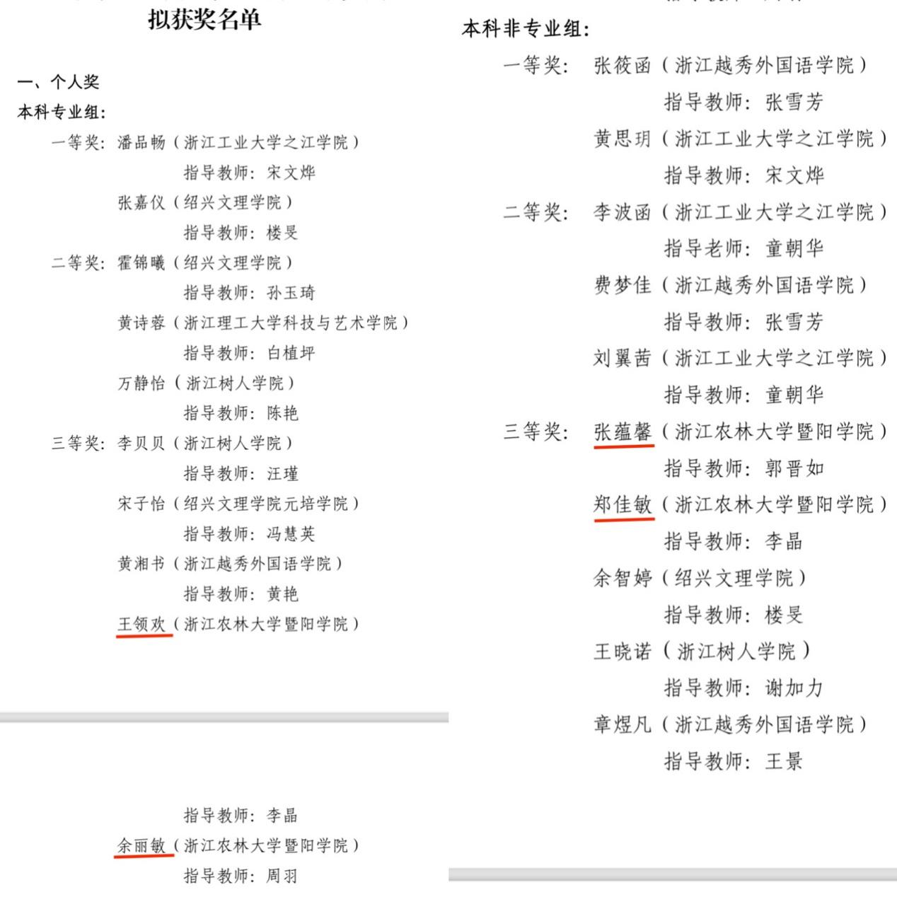 学院在绍兴市第十八届大学生英语口语竞赛中再创佳绩