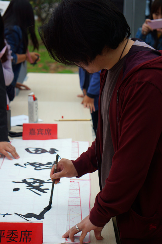 本网讯 4月27日上午,“美丽天目•绽放光彩”第七届校园文化艺术节开幕式暨首届“暨阳红”——“翰墨暨阳•丹青天目”校园书画大赛在“院士林”文化广场顺利举行。中国国家画院刘健工作室画家、浙江省书法家协会会员、绍兴画院副院长、诸暨市美术家协会主席蔡栋和浙江国画家协会会员、绍兴美术家协会会员、诸暨市美术家协会副主席金康华担任书画大赛评委。学院团委、诸暨团市委相关负责人,各团学组织指导老师、学生代表和26名参赛选手参加了本次活动。