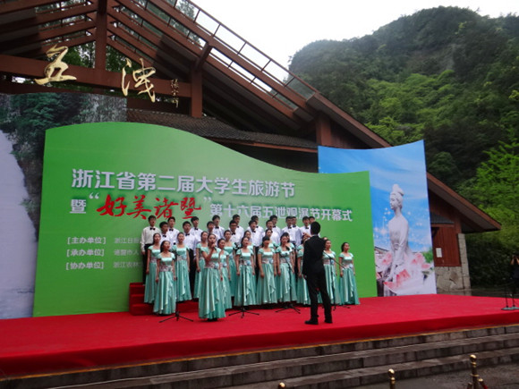 此次活动由浙江日报报业集团、浙江省旅游局、共青团浙江省委、浙江省学生联合会主办,诸暨市人民政府、浙报传媒旅游全媒体中心承办,williamhill官方网站天目学院协办。威廉希尔官网选送的合唱节目《江山》在开幕式上精彩演出,充分展示了威廉希尔官网大学生的风采,得到各界人士的一致好评。经管系学生程焕杰同学代表全省大学生上台接受团省委领导授赠的旅游行囊,标志着“大学生背着行囊看世界”活动正式启动。