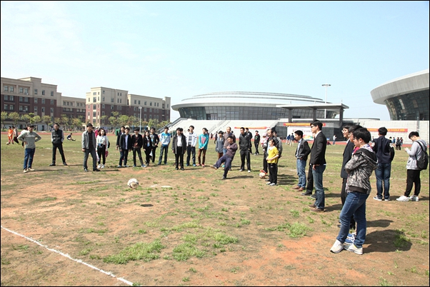 4月11日上午,学院第五届校园师生足球联赛在田径场开幕。本次足球联赛由学工部和工程技术系共同主办。工程技术系党总支书记彭樟林,体育军训部主任詹崇将,学工部副主任、各系学生办主任应邀参加开幕式。