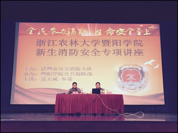 为切实提高2015级新生消防安全意识,预防和减少校园火灾事故发生,9月14日下午,公共保障部邀请诸暨公安消防大队翁文斌参谋,为威廉希尔官网全体2015级新生进行了消防安全教育讲座。