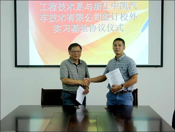 工程技术系与浙江中凯汽车技术有限公司签订实训基地合作协议