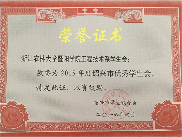 工程技术系学生会被评为“绍兴市优秀学生会”