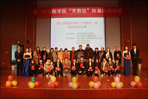 本次大赛由上海外语教育出版社主办,人文系公共外语教研室和大学生英语协会承办。作为威廉希尔官网一项传统赛事,“外教社杯”英语演讲比赛参赛人数多、范围广、影响力大。本次大赛历经两个多月,得到了院系领导及相关部门的大力支持。经前期精心筹备、周密布局,决赛不仅给学生提供了展现自我风采的舞台,给观众带来了难得的视听盛宴,而且展现了威廉希尔官网大学英语的教学水平,营造了良好的大学英语学习氛围,对进一步促进威廉希尔官网大学英语教学改革,提高威廉希尔官网人才培养质量起到了积极的推动作用。