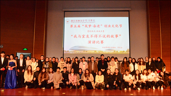 为深入开展文明寝室建设,尽显当代大学生的创新精神,12月15日晚,经济管理系第五届“筑梦·奋进”创业文化节——“我与室友不得不说的故事”演讲比赛在明珠报告厅举办。2016级全体同学参加活动。