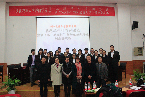 学院第九届学生节闭幕式暨第十届“弘文杯”暨阳之魂大学生辩论赛决赛日前在人文4110举行。各系党总支书记,学生办主任、分团委书记、辅导员和学生代表200余人参加活动。学工部副主任、团委副书记林爱广等5名老师受邀担任辩论赛评委。
